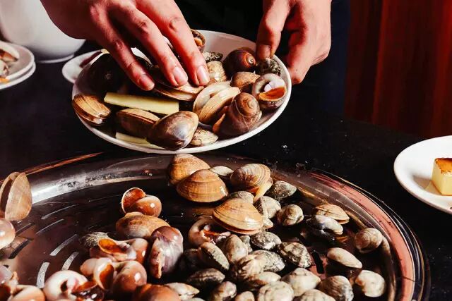 各种鲜活的贝类也是哗啦哗啦的下锅