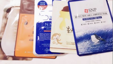 1. 水光面膜:这是我自己最常用的面膜,个人觉得特别好用,分三步,洗面奶-精华-面膜,这款主要是美白补水功效的面膜,按照面膜步骤贴,面膜纸是黑色的,每次贴完都会感觉皮肤白一点,补水效果好(由于是美白功效的,不建议每天贴)2.可莱丝面膜:我相信这个面膜就不多说啦,补水效果好,性价比高,特别好用,有补水的功效,可以每天贴