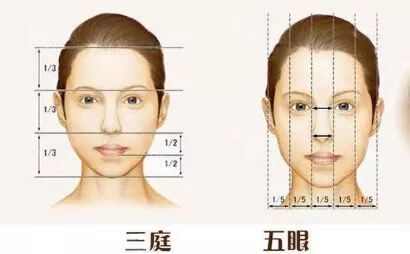 鼻翼宽度(也就是两鼻孔外侧缘的距离)相当于一只眼睛的宽度,按照眼睛长度把脸的宽度分成五个等分,从左侧发际至右侧发际,为五只眼形;
