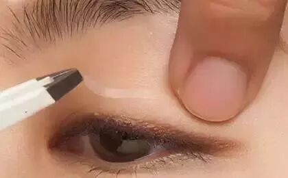 有的眼皮一来就贴美目贴是撑不起来的,反而把眼皮压住或是露出美目贴。所以这个时候我们就要借助睫毛的支撑,让假睫毛堆出双眼皮褶皱就好办了!