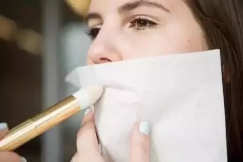Step 8:取一张面巾纸,将它分成最薄的一层,之后在薄纸上扑上一些散粉,能够让你的唇膏色彩更加持久,看起来还带有哑光感。Step 9:再次用口红加深颜色,之后你就可以自信地出门啦!