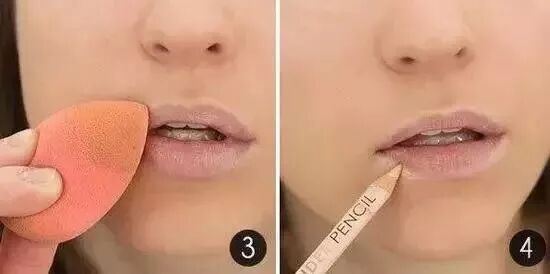 Step 3:用少量的遮瑕膏点拍唇部,不要把唇部粉嫩的颜色遮盖住。遮瑕膏可以帮助你的唇妆更持久,如果你的唇纹比较深或者唇部的颜色较暗,能够很好的帮你提升唇部色彩。Step 4:用遮瑕笔勾勒出唇部轮廓,之后用手指指腹将它稍稍晕开,这样在上唇膏时可以避免你的口红画出边缘,能够帮助你的唇部轮廓显示的超级清晰。