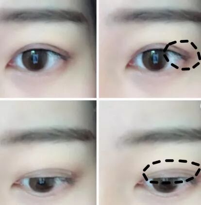 但是,但是,如果没有正确的操作的话,双眼皮贴还是会显的有先明显,有时候让别人盯着你的双眼皮贴看也会觉得无限尴尬(个人觉得很尴尬啦!)“简单说明一下,下面一个是未修剪的双眼皮贴贴出来的效果,一个是是修剪过的双眼皮贴贴出来的效果”