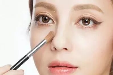 如果你的鼻梁本身就不是特别高的,戴上大框眼镜更会显得面部过于平板,所以五官轮廓的加强是非常必要的。大框的眼镜本来就会显得鼻梁比较窄,所以只要在妆容上让鼻梁变高就OK咯。所以请在鼻梁上扫上高光!