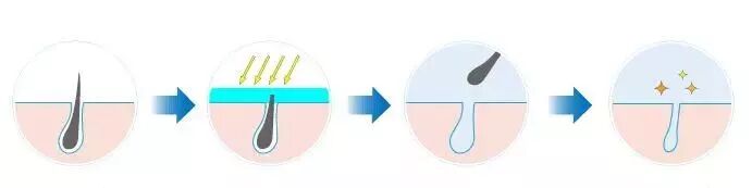 激光或强光脱毛利用的是激光的热效应,破坏毛囊的干细胞,毛囊和毛乳头,暂时或者长期影响毛囊生长功能,让毛囊失去有利的生长条件,起到永久性的减少毛发效果。
